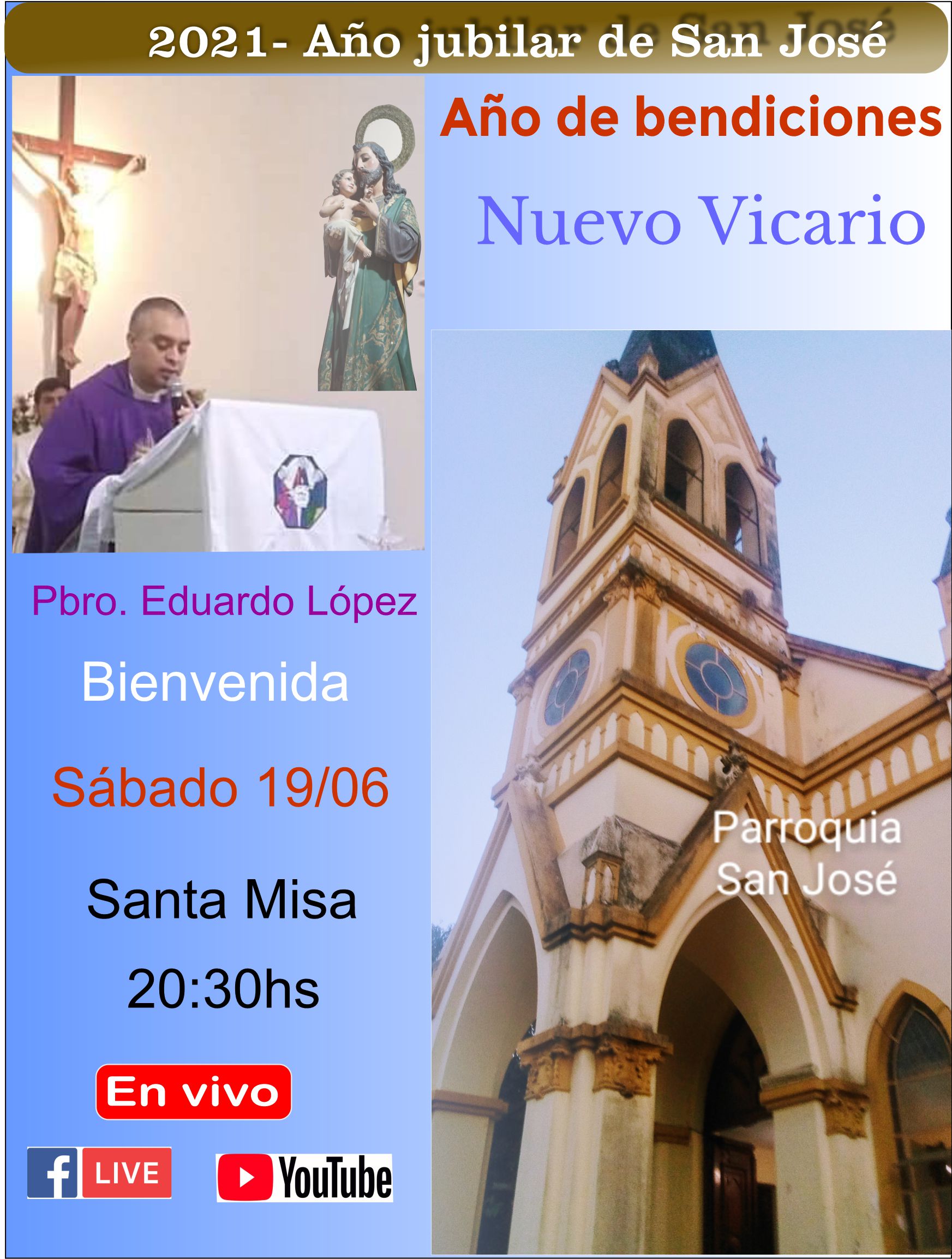 Desde el 19 de junio de 2021, la parroquia contará con un nuevo vicario y estará con nosotros en la misa de 20:30hs