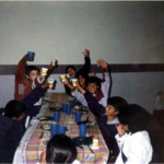 La escuela Justiniano Frías, prestaba sus instalaciones, y allí se preparaba la comida “con leña”, y los niños recibían el almuerzo diario, para lo cual traían platos y cubiertos de sus casas.