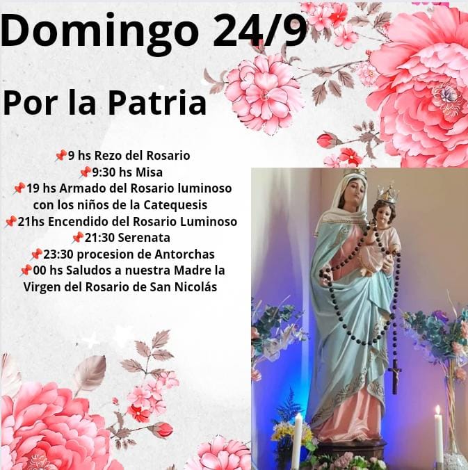 20 septiembre, 202316 septiembre, 2023 por admingral Fiestas Patronales Ntra Sra del Rosario de San Nicolás ¿Quieres conocer más de nuestra capilla ? Tocá aquí