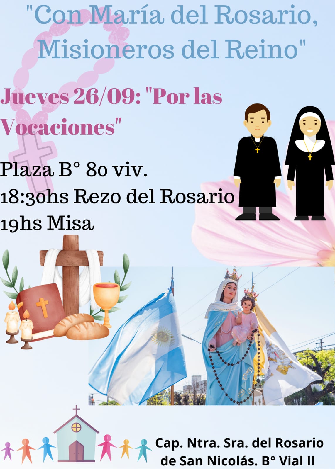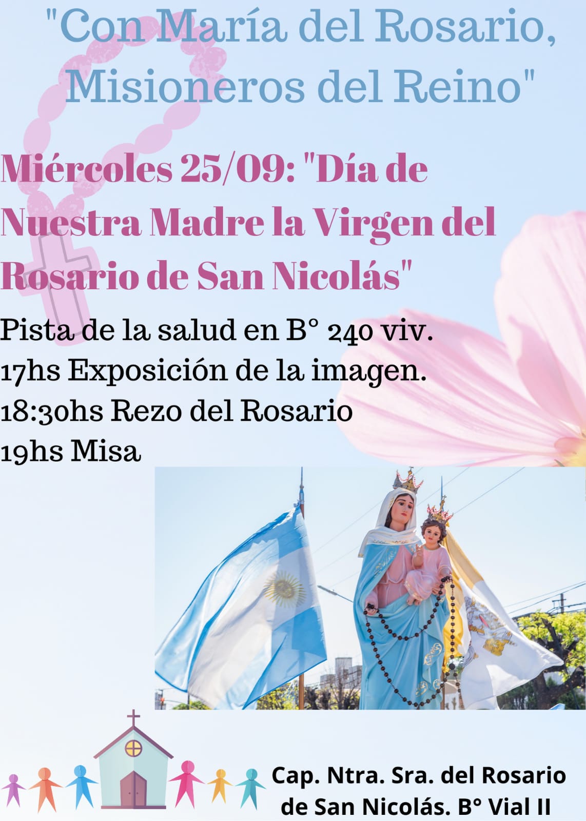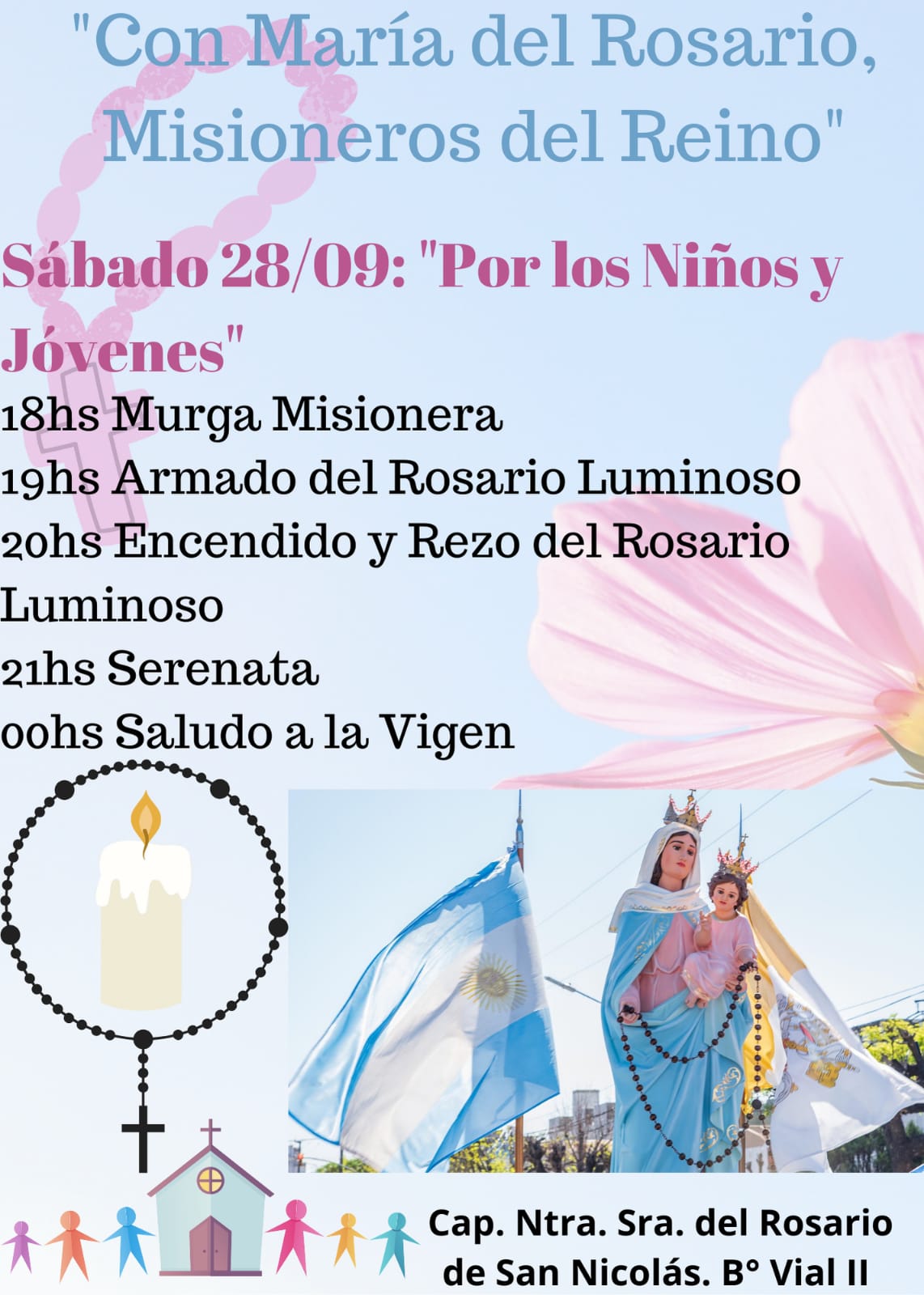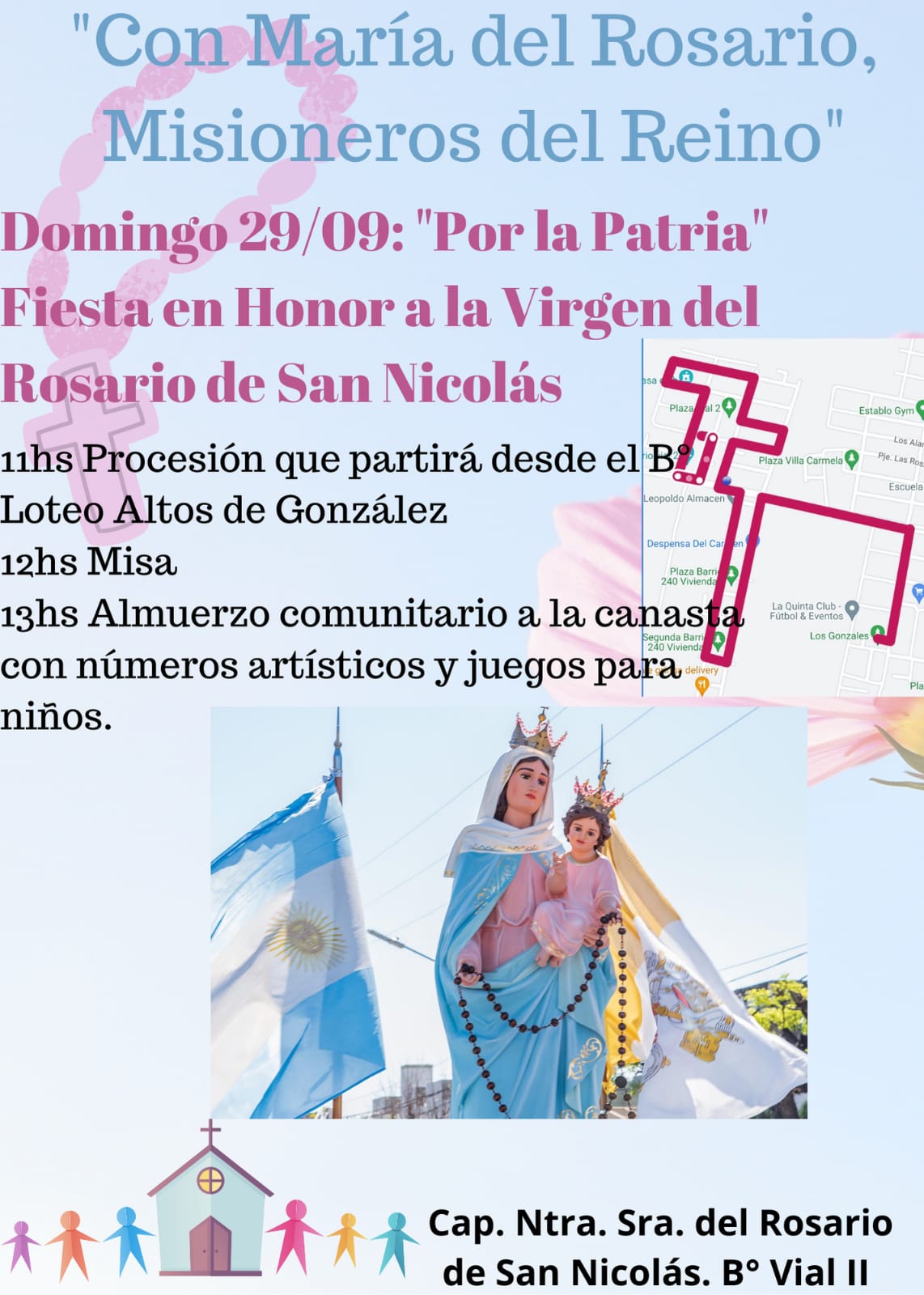 18 septiembre, 2024 por admingral Fiestas Patronales de Ntra Sra del Rosario de San Nicolás Desde el 20 al 29 de setiembre bajo el lema "Con María del Rosario misioneros del reino"